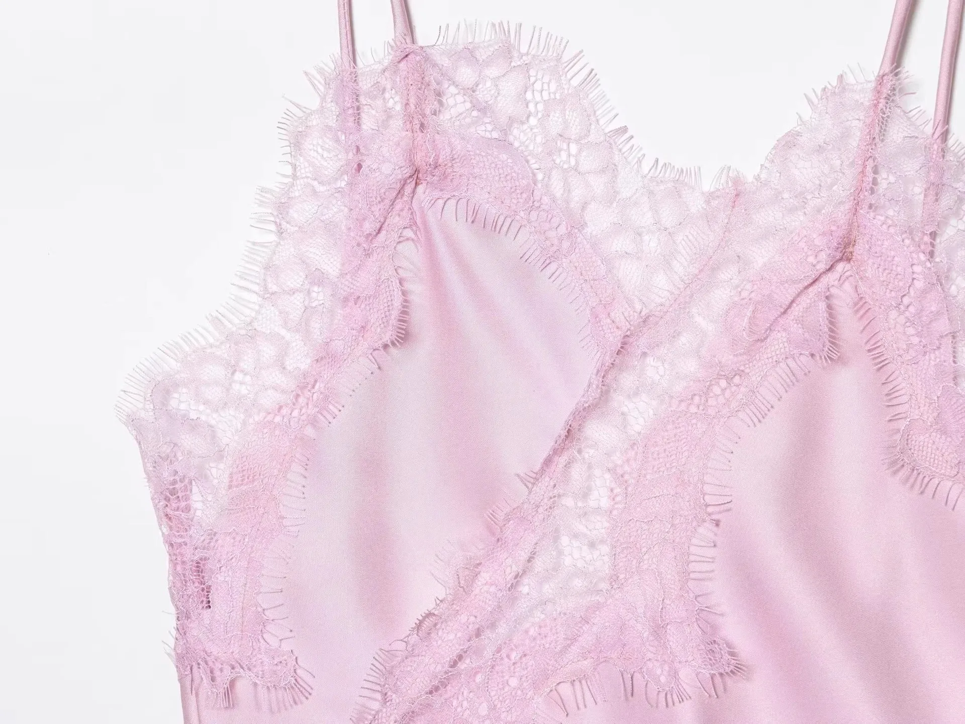 Solid Color, Sleeveless,Splice,Backless,Lace |